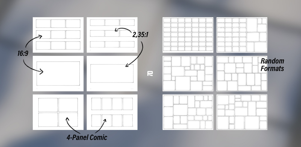 * By the way, I prepared some specific formats, like 16:9 and 2.35:1 (cinemascope) for you storyboard artists out there. Also, there are two types of 4-panel comic/meme blanks! And of course lots of random formats for your next meditative doodle session.